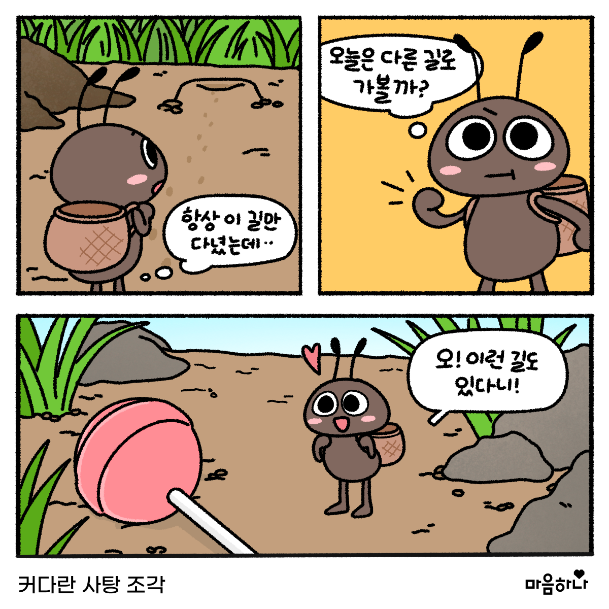 컷툰커다란 사탕 조각안 가본 길을 가는 것도 커다란 도움이 되는 군!