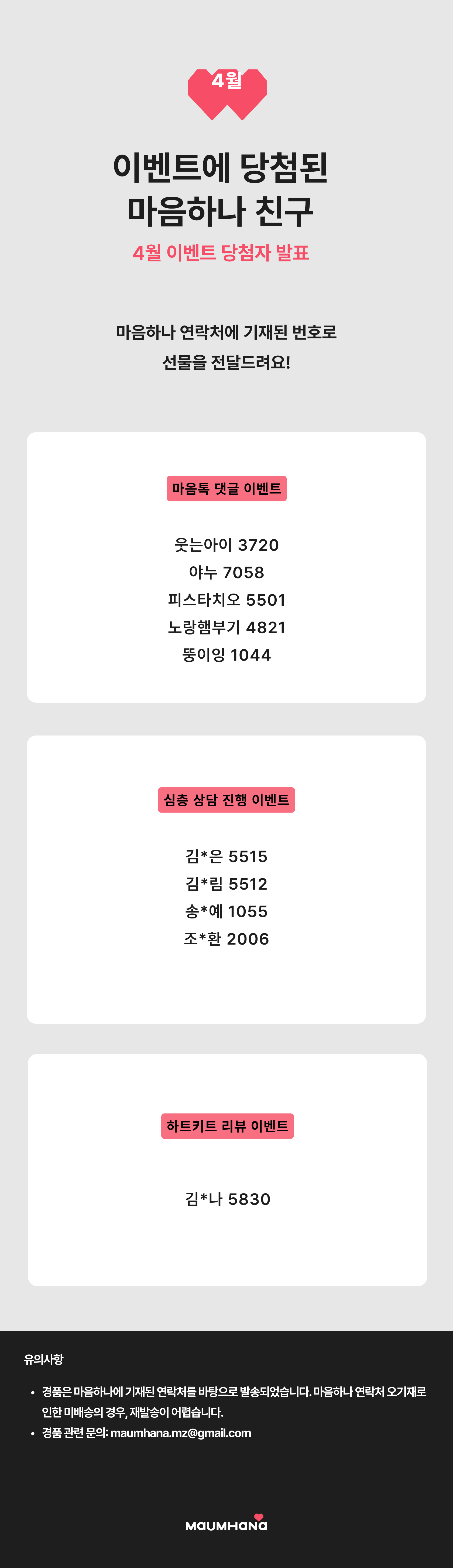 이벤트에 당첨된 마음하나 친구들 💖