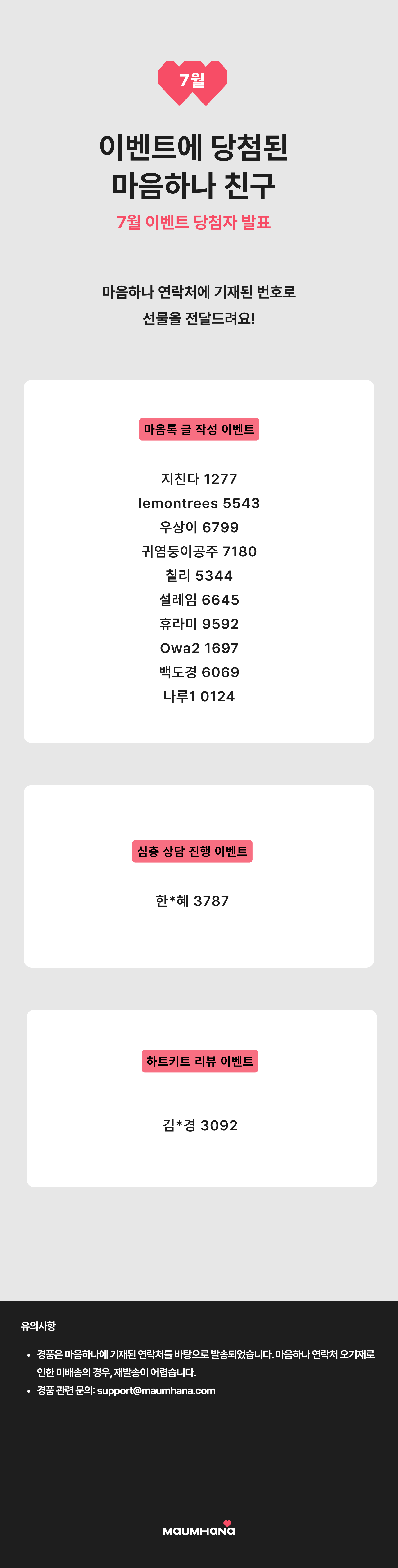 이벤트에 당첨된 마음하나 친구들 💖
